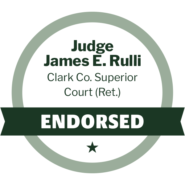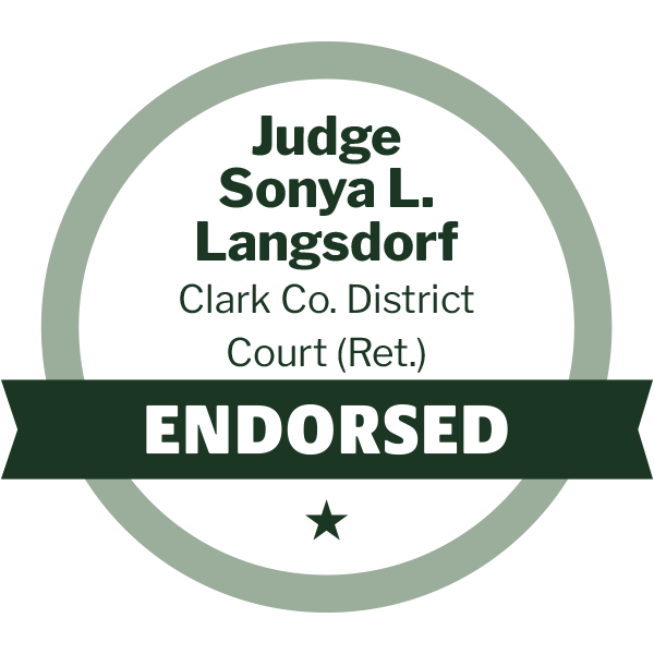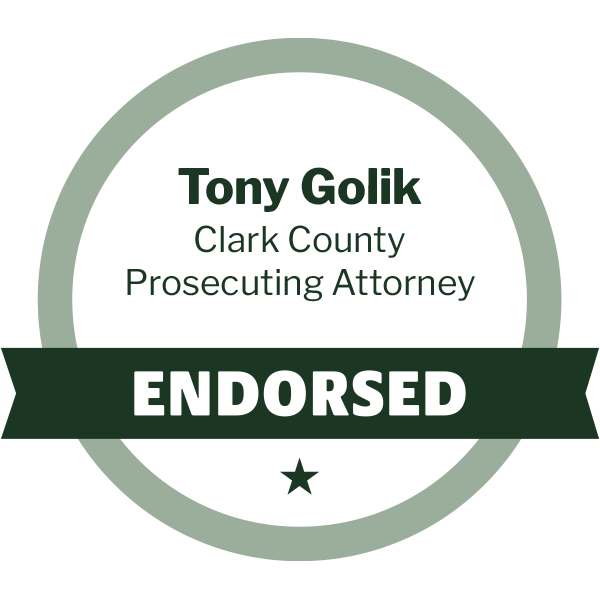 This work is more than a job to me—Clark County is my home. My husband and I are raising our two young children here, and I’m committed to making sure this is a place where families feel safe, where justice is delivered fairly, and where the legal system works for everyone.